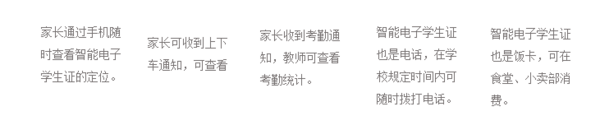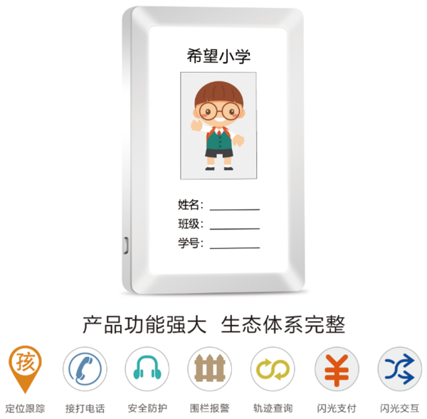 光交互电子学生证是巨浪物联的第三代电子学生证。与目前市场上的电子学生证相比,除了具备通话、定位、考勤、报警、缴费、消费等功能。