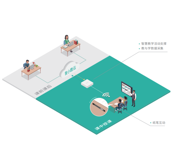 可以常态化应用、建设的教学互动智慧教室。通过青小鹿妙笔和青小鹿课堂互动软件,实现课前课中课后教学数据全流程打通,日常教学更具交互性和趣味性,提高教学效率。
