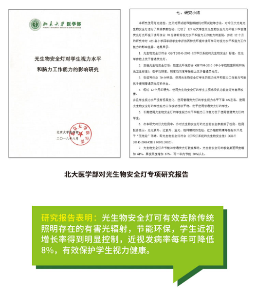 哈工大光电研发生产的光生物安全护眼灯采用两项国家级航空航天专利技术,延缓了产品光衰速度、提高了产品使用寿命,可以抵制光污染,去除七种有害光辐射,保护视力健康。各应用学校提供的数据显示,光生物安全护眼灯耐用度极强。