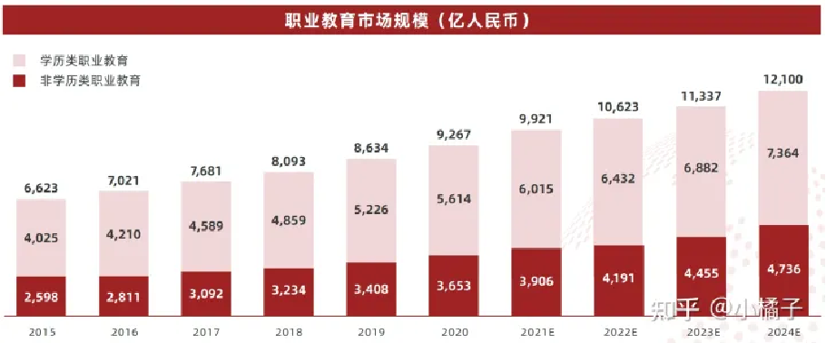 2022 年,学历及非学历类职业教育规模合计可达万亿。
