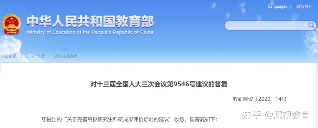 针对此前人大代表提出的“改革我国对博士生、硕士生毕业考核体制,给予导师决定博士生、硕士生能否毕业的自主权”,教育部认为该建议具有十分重要的现实意义,对完善高校研究生科研成果评价标准具有很大启发,决定充分采纳。