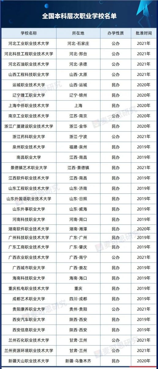 2019年2月,《国家职业教育改革实施方案》提出要“开展本科层次职业教育试点”,5月,教育部批准成立首批15所本科层次职业教育试点学校。到今年,根据教育部最新发布的2022年全国高等学校名单(截至2022年5月31日),全国职业本科院校已有32所。